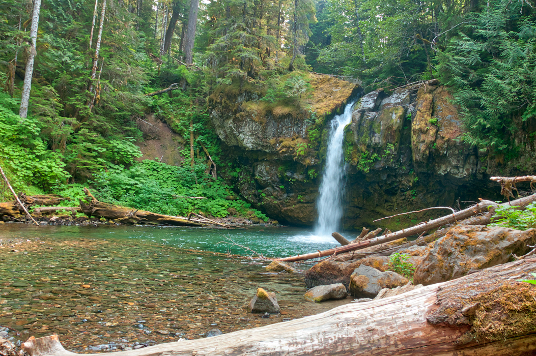 Our next destination after the Columbia River was an RV park in the vicinity of Mount St. Helens.  There are oodles in the area, but most were already booked.  We were fortunate to be able to get in to the Tower Rock U-Fish RV Park, about 13 miles south of the town of Randle.  The downside was that it was a little out of the way down paved but narrow roads into the Gifford Pinchot National Forest.  Portions of the road had partially fallen away and had then been overpaved without complete leveling.  The consequence was a number of significant dips that I evidently took too fast.  When we arrived at the campground and disembarked, we could hear a loud hiss in the vicinity of the right rear wheels.  After settling into our spot, Bill peeked under and announced that he saw the problem.  The left right air bag that provides cushioning for the bus was punctured and leaking air.  Furthermore, the shock absorber at that location had failed.