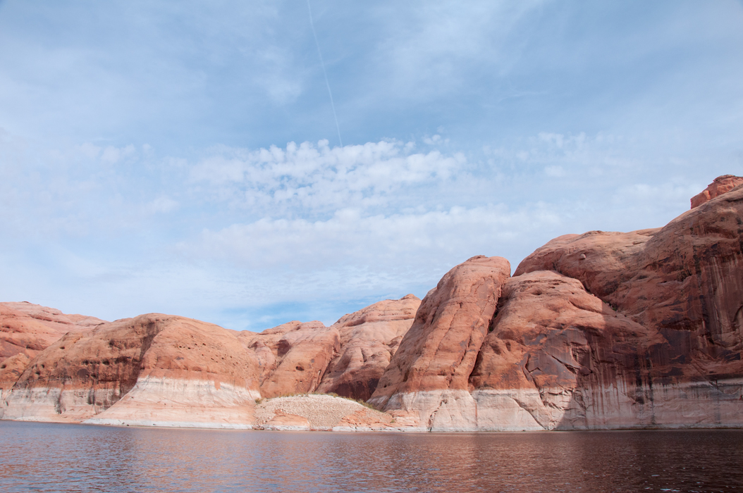 The gang of six got settled into the Wahweap RV & Campground on October 17, and took the pontoon boat out onto Lake Powell the next day. The day was mostly sunny, but fairly cool. Our destination was Rainbow Bridge.