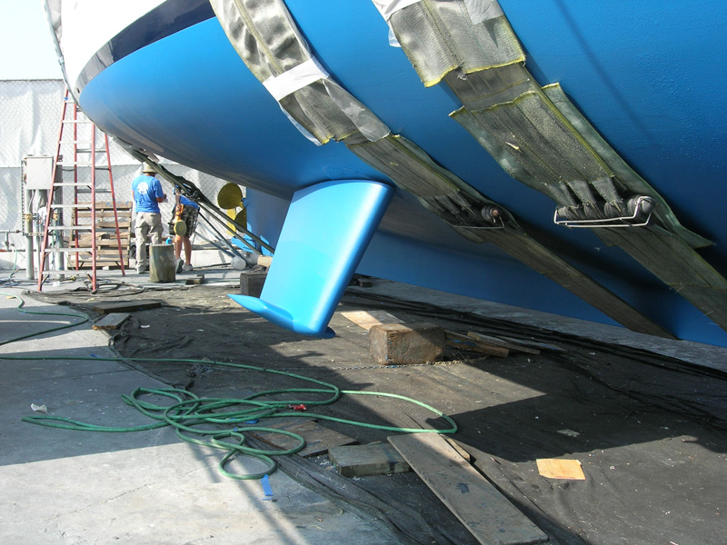 I had put out a query on the web about recommended bottom painters, and Harbour Towne had been mentioned by many. We could see why almost immediately. It is a large operation with a large staff and a very substantial lift. The manager mentioned that they averaged about four bottoms painted a day. All the more remarkable since most of the other vessels in the yard were huge -- huge as in well over 100'. (At one point I got a cell call asking us to return to the boat so that it could be splashed -- the bottom was done. Unbeknownst to them, we were already in the yard, and there was so much noise that I had trouble hearing the caller. Apparently thinking that my many requests to repeat must be due to a wrong number, the staff member backed up and asked: "Are you the skipper of the little trawler?" Harrumph!)