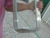 We left (8/18) the scenic protection of our little cove on La Trappe Creek, and cruised on up to Worton Creek, where we had made arrangements to meet Bill and Staci McLaughlan, original owners of our boat. We were a day ahead of them, and so we anchored out at Worton Creek that night, and went on in to the Worton Creek Marina the next day in the early afternoon. Good thing that the Chesapeake has mostly soft bottoms -- the anchor alarm screamed at us as we got close to the marina, and we touched several times as we maneuvered up to the fuel dock for a pump out. Short pilings at the dock, and wind pushing us around, and so a rear spring was employed while I inched forward. Of course, the bow swung smartly to starboard and swung over the dock. but after a momentary pang of concern, I thought everything was all right. Wrong. (See below.) We then screamed on into our slip, assisted by Bill and Staci, who had arrived while we were at the fuel dock. We later joined them for drinks on their boat followed by a delicious meal at Harbour House Restaurant. Three of us had Crab Imperial, and we can enthusiastically recommend it. Good to see Bill and Staci again -- they are a warm and friendly couple, and we enjoy spending time with them. And we continue to feel grateful for all of their intelligent and tasteful decisions on originally outfitting what is now our boat.