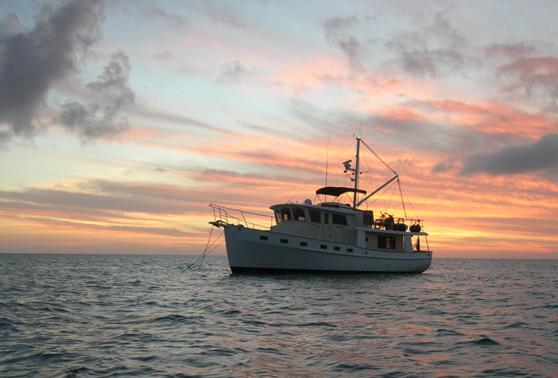 After leaving the Exuma Land and Sea Park, we cruised south with Pat and Ted Edmunds on Seaclusion to Little Bell Island (aka Cambridge Cay.) Although they are still enjoying the immediate area, Paul and Karin on Dream Weaver have joined their friends Mennow and Val on the sailboat Eira, with whom they will travel to the Caribbean during the next year. On Little Bell we discovered a place rightly called the Sea Aquarium. It is a beautiful wall in less than 20' of water with all sorts of coral and fish including queen triggers, parrot fish, queen angels, rock beauties, butterfly fish, yellow tail snapper, yellow jack, and especially pesky sergeant majors that were looking to be fed. It is definitely a place that should not be missed for snorkeling. We also snorkeled a place south of Little Bell called Rocky Dundas which consists of two high rocky islands that have caves that can be accessed at low tide. We discovered fish and coral in front of the caves. But the real reason to see these caves is the beauty of the caves themselves. They feature stalactite and stalagmite formed 15,000 years ago when the water level was some 300' lower than what is is today. At that time, the Great Bahama Bank was one large island. Absolutely beautiful, with light streaming in though the openings at the top. We snorkeled in at low tide and so could enter and leave without much current to deal with.