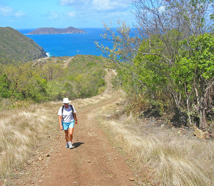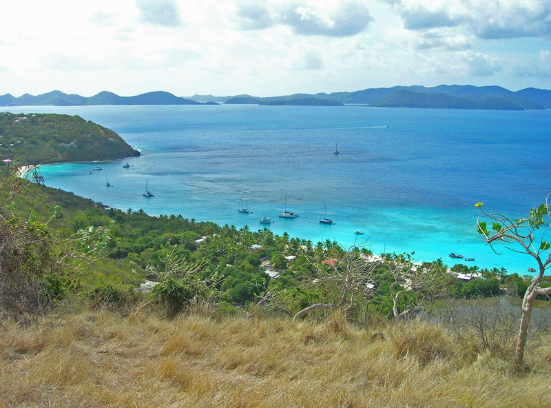 Jost Van Dyke has a world-wide reputation among cruisers. It is a place where cruisers flock in the BVIs in order to party. We went to Jost Van Dyke because of that reputation, but saw nothing so very special in terms of partying. But we lingered longer than we expected, because of the island's mountain paths and off-road roads. The island is small, with only approximately 175 people on 3 square miles and one small navigable road.