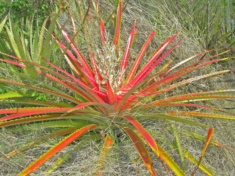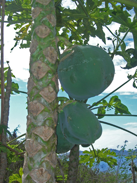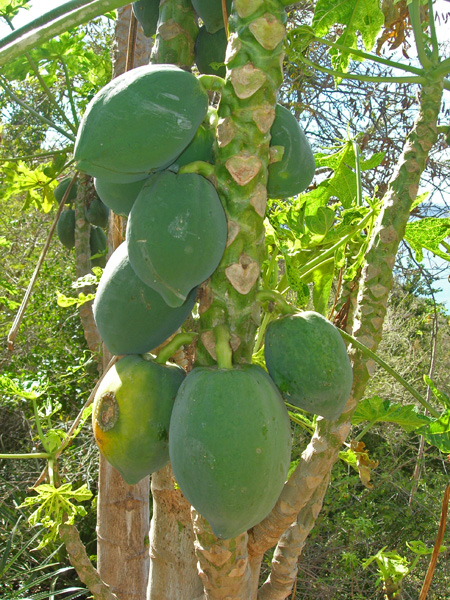 There is a peak just north of Great Harbour, with a very steep "road" that switch-backs up to the top, some 1000 feet above the sea. Chuck went running to the east one day on the main road, while Barb took the road west over to White Bay. Very pleasant. With our appetites thus whetted, the next morning we first walked to White Bay, took the steep "road" up the peak and then along the ridge to the east end of the island. Extraordinary! A very challenging seven miles, but the view from the top is unforgettable. So the next day we did it again, but in a counter-clockwise direction. On our walks, in addition to the spectacular views, we saw lots of birds, free-ranging sheep and goats, and lots of mongooses (mongeese?), and on one stretch, some mystery fruit (see pictures, below). Way up on the top of the ridge we encountered a crew of three weed-whacking the grass along the side of the "road". Why that would be necessary, or even desirable, remains a mystery to us. Politically-motivated make-work, maybe?