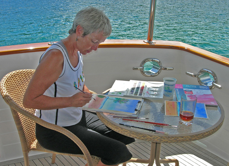 We were enjoying Grenada so much that we just could not pull ourselves away. It's nice to be settled for a while and get into a routine. We attended exercise class every morning, after which Chuck ran; some days Barb took a water color class; and we took a bus into the big city of St. Georges to shop a few times a week. One evening we took a taxi in with four other couples to see the movie Ratatouie -- followed by dinner. We attended the weekly Saturday evening pot luck & karaoke night at Clarke's Court Marina and attended the Sunday afternoon beach party at Hog Island-- which is about 300 yards from our anchored boat. We enjoyed many sundowners with other cruisers and often were invited over or had folks over for dinner. Life is good!
