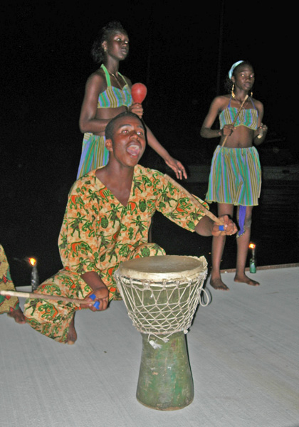 One evening we attended a first-time dinner party at a new marina/resort called La Phare Bleu where after dinner we were entertained by the Tivoli Drummers, a local group of drummers and dancers. The venue was a large vessel that had originally been a Swedish Lighthouse boat -- it was towed all the way to Grenada by the Austrian couple that are opening the resort.