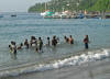 Live music is scheduled for 6:30 PM at one of the speaker sites, but there are no signs of musicians as we pass by on our way back to the minibus at 8 PM. One of the other buses leaves at 9:30 and a passenger later tells us that it looked as if award ceremonies -- for the associated sailboat races, beach runs, tug-of-wars, etc. -- might have been "just about" ready to begin, after which presumably the live music began. The islanders have a phrase that they use: "jus' now", which does NOT mean "almost immediately", or even "soon", although it is uttered as if it does. This can confuse the novice cruiser. "Jus' now" is best translated as a combination of gesture and words. The gesture comes first, and would be a shrug signifying a certain amount of uncertainty. The words would be something like: "I suppose it could be any time now." So if our friend at 9:30 PM had asked when the live music would begin, he almost certainly would have been told "jus' now". And had we asked at 8 PM, we would have been told "jus' now". Simple, heh?