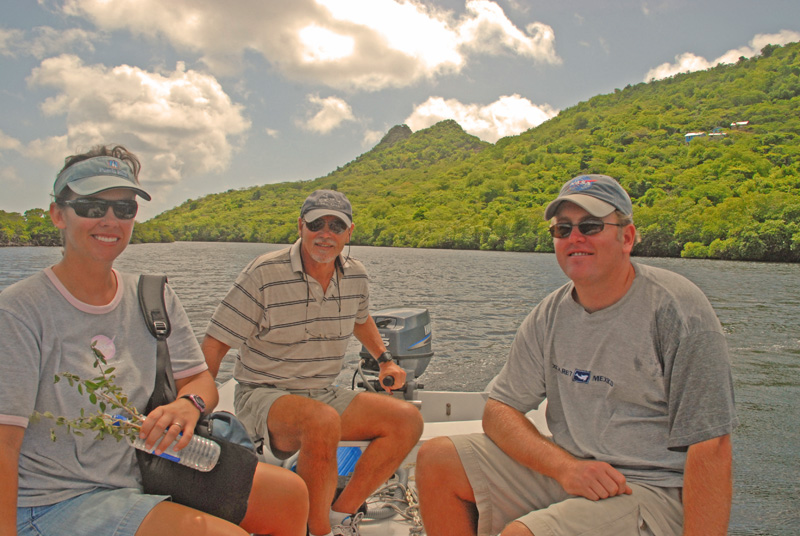 Tyrrel Bay is a nice anchorage. We have a little trouble getting the anchor to set on the first day -- the open spot is fairly grassy, and the Bruce anchor doesn't like grass very much -- and we are out far enough to suffer a little rolling, but when a vessel leaves the next morning we move up and find good holding and minimal rolling. In the process of getting a wireless connection from the boat, we discover that the expensive Radio Labs wi-fi antenna that we bought back in St. Thomas no longer works. Fortunately, one of our Dell PCs has a very strong internal card so we can get a marginal signal using it. It is amusing to see what we cruisers go through to get an internet connection. Often it entails cruising around an anchorage checking for a signal and then finding where to drop that anchor so we can get the strongest possible signal. Of course, it is usually the case that a number of other boats are already anchored in the best spot. Often we have to take the PC to shore and find an internet cafe. Often we find ourselves parked on a picnic table under a tree trying to find an angle where the glare from the sun is not too strong. One of our PCs is running so slowly that it has almost become unusable. After many calls to both Symantec and Dell, the verdict is to reload the operating system and all the software from scratch. Barb is almost in tears remembering the days it took the last time she had to reinstall, but eventually decides to get on with it. She finds a place where we can get an internet cable connection for our PC -- as well as use the PC next to it to call the software vendors via Skype. She is able to accomplish in one day what took almost four days in St. John back in March.
