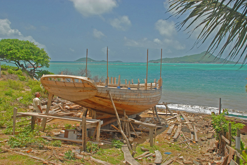 One of the highlights of the tour is a stop at Windward on the northeastern tip of the island. Windward has long been a center of wooden boat building, and even today one can see vessels that are being built entirely by hand. When a boat is finished the locals gather for a day of celebration and to launch the boat. [Many days later, Steve and Ann (Receta) return by ferry to Carriacou from Grenada in order to participate in the launching of a 40' sailboat. They report that it is quite the event. A priest first gives a blessing with holy water and then someone else blesses the vessel with a bottle of rum. Guess they are attempting to cover all bases. There is also a cake dance around the vessel before the launch, and throughout the day much eating and consuming of rum. The launch itself takes many hours, since the craft is slowly rolled over logs into the sea. We envy them the experience, and hope to one day witness a launching ourselves.]