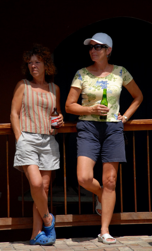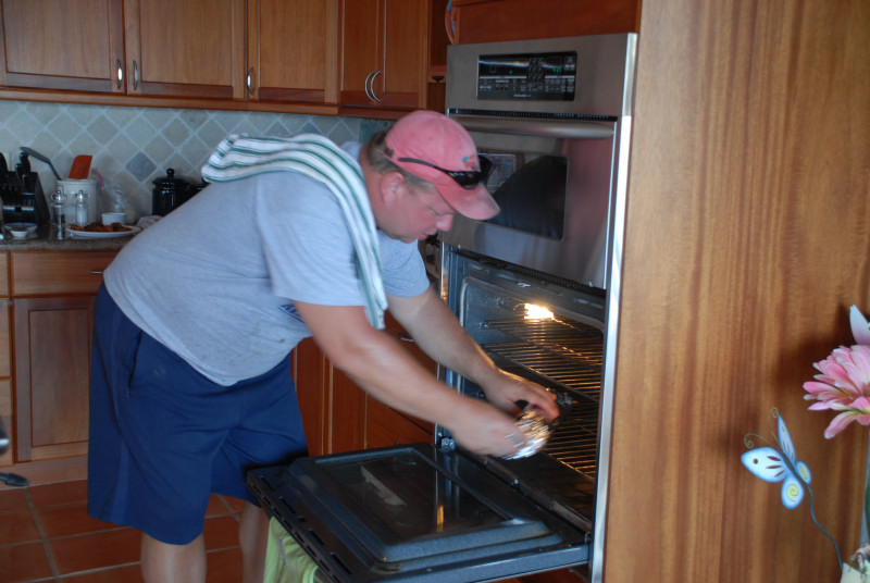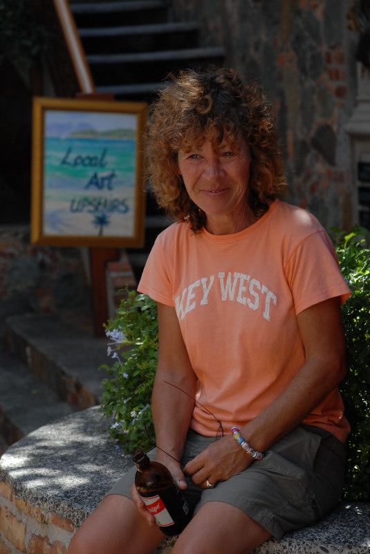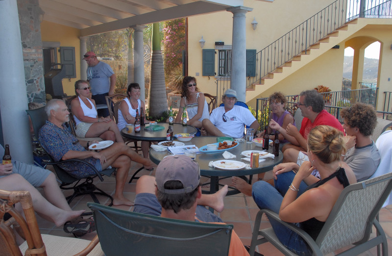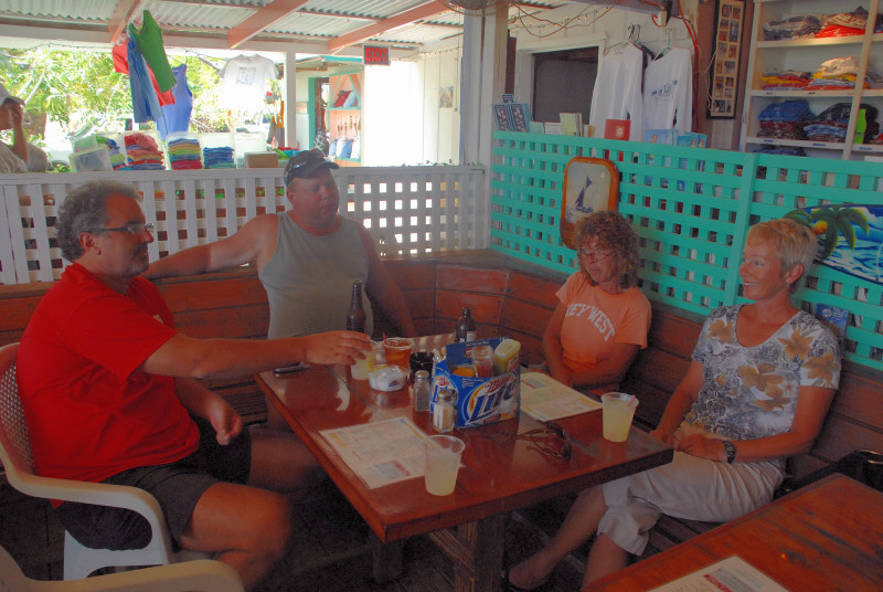 In a way, we were lucky to have the crash. Or at least, if we were going to have a crash, we were lucky that it occurred here. We had a great time on the island, getting to know Vicki and Steve, meeting other locals, exploring the island, and getting a feel for the local ambiance. For example, we learned that the "new" locals, the ones that have only lived here for under ten years, feel a strong sense of community with their friends. Someone said that their birthdays always get remembered and celebrated here by friends, something they said never happened back in the States. No one knows last names. Everyone has a nickname, to help distinguish between folks with common first names. There was a Pete, for example, who was known as "Heineken Pete", even though Pete had been on the wagon for several years. Steve said his own nickname was "Steve 'n' Vicki". Men have a special handshake that starts like a normal one, but ends with touched fists. Woman are always kissed on a cheek, sometimes both.
