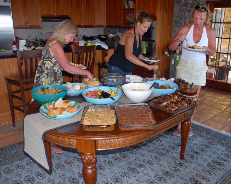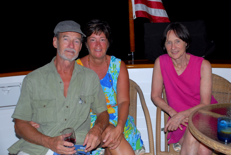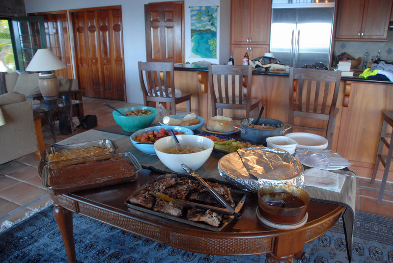 And then Steve and Linda announced that on the following night they were going to throw another rum tasting with guests from the trawler Diesel Duck. Further, Diesel Duck had guests on board that we would surely want to meet: the videographers and creators of a television series devoted to cruising. Their show Distant Shores airs in Canada, and in several European venues, including Norway and Sweden. It has also recently been picked up by a cable channel in the USA. The rum-tasting would be photographed for future airing on the show! That sounded interesting, and so we delayed our departure yet another night. Meeting the owners of Diesel Duck and their guests was a treat. We thought we were accepting an invitation to join Steve and Linda for an hour or two of rum and nibbles, but Linda surprised us with a gourmet dinner that could have stood on its own legs as a subject for a cruising episode. Yummy!