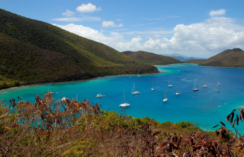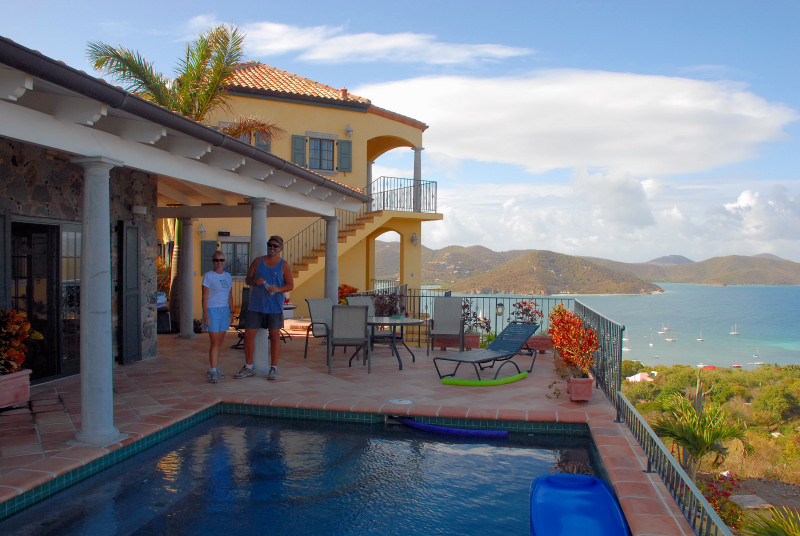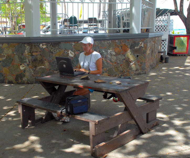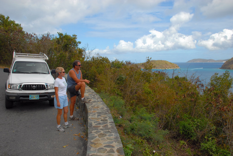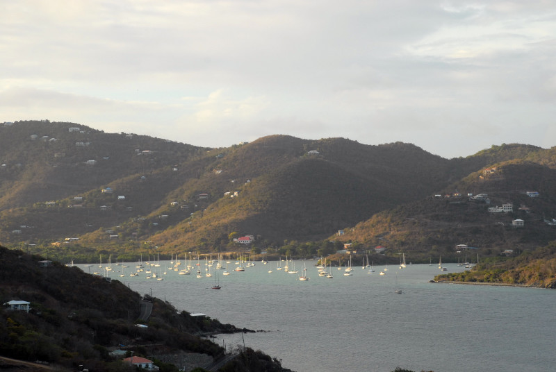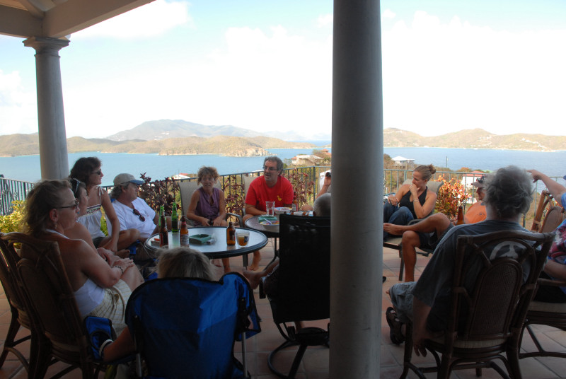 We bounced around a bit during our stay in the USVI. Spent too much time in the rolly anchorage of Caneel Bay, since it was close to Cruz Bay, where we were to pick up our new disk drive. Also visited Francis Bay and Hawksnest Bay which were much smoother but unfortunately too far away from Cruz Bay. Eventually, we moved around to Coral Bay, on the southeast corner of St. John, where we were fortunate enough to be able to use one of Steve and Vicki’s cell phones for our struggles to get our computer system restored. We had a great time socializing with Steve and Vicki and a friend of theirs from DC, Eric. Chuck also joined Steve and several young ladies – Vicki, who does not join in, calls them “Steve’s harem” -- on their very early and very challenging run/walks on the steep steep trails in the area. Terrific exercise. Barb would have liked to have also become an honorary member of the harem, but alas, her time was taken up in days of efforts to restore the computer system. And speaking of the crash, the fact that you are reading this does indeed signify that the system has been restored, thanks to the Herculean efforts of Barbie. This account is already far too long, so we omit a description of the twisted and tangled path that finally led to restoration.