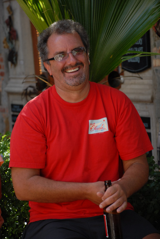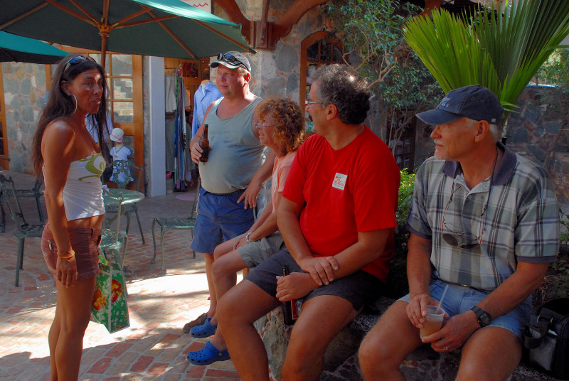 We finally said our good-byes to Seaman’s Elixir and Salty (new Swedish friend Haakan had also been persuaded to delay his departure and attend the tasting/dinner) the next morning, 3/13/07, as we left our staging-mooring at Ensenada Dakity, Culebra. Only 28 miles to pass out of the Spanish Virgins and into USVI, to Long Bay, Charlotte Amalie, St. Thomas, where we were hailed by Jim on Osiris. We first met Jim at Georgetown, Exuma Islands, in the winter of 2005/2006. We’ve been repeatedly running into him this winter, starting in Luperon, PR. He had some friendly advice on where to anchor in Long Bay in order to avoid the rollers coming in from the south, and later joined us one evening for drinks and conversation about what to do and not do, and where to go and not go, as we proceed southward toward Trinidad.