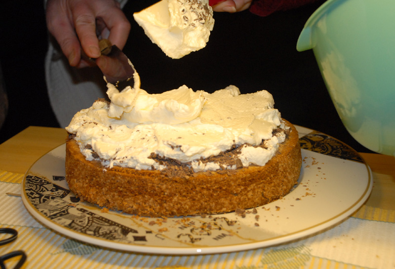 Randi (Tove's sister) joins Marie in applying sauce topping to the fish dishes