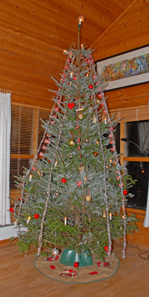 Very common for Norwegian Christmas trees to be decorated with strings of small Norwegian flags