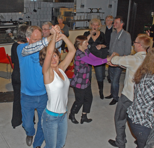 A few more songs, and Chuck convinced Barb to dance. No others.