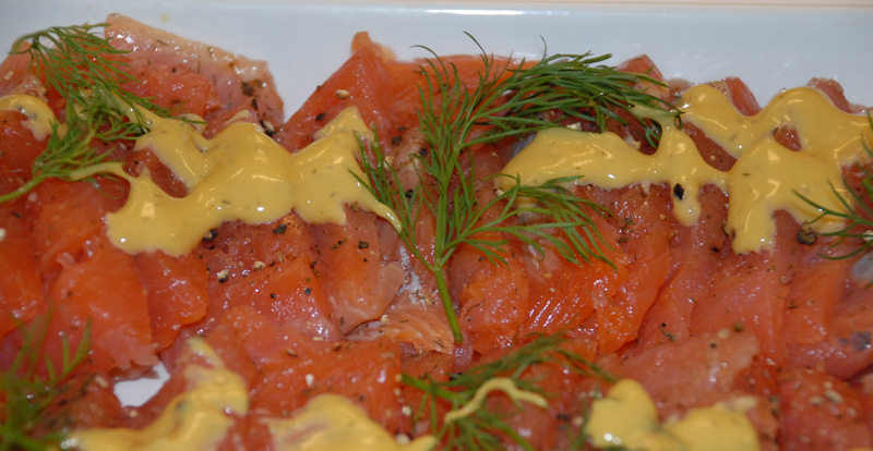 Rakfisk -- this time with a decorative whole rakfisk on the platter
