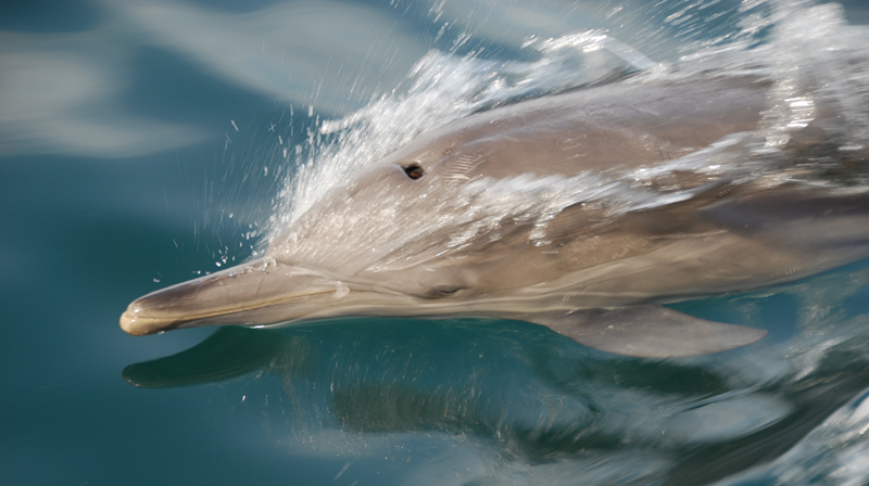 On the way down from Laguna Grande to Medregal Village, we passed through flat waters that were teaming with thousands of dolphins. We've seen large pods before, but this time there were pod after pod of dolphins, and each pod was huge. Many of the pods dashed over to our boat in order to play in our pressure waves.