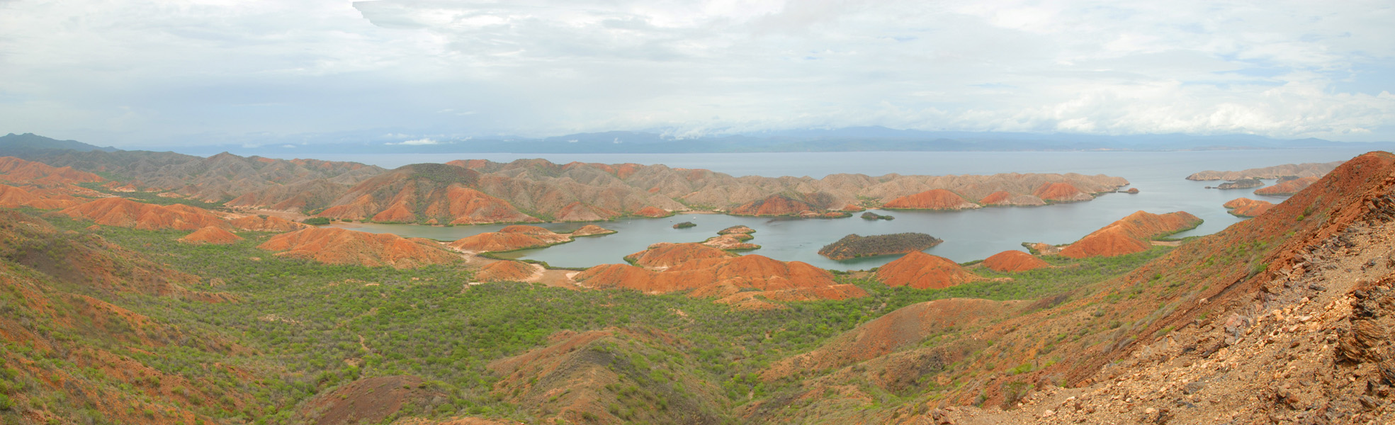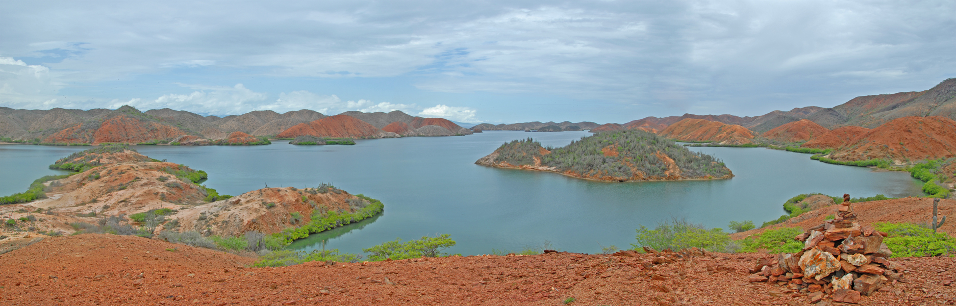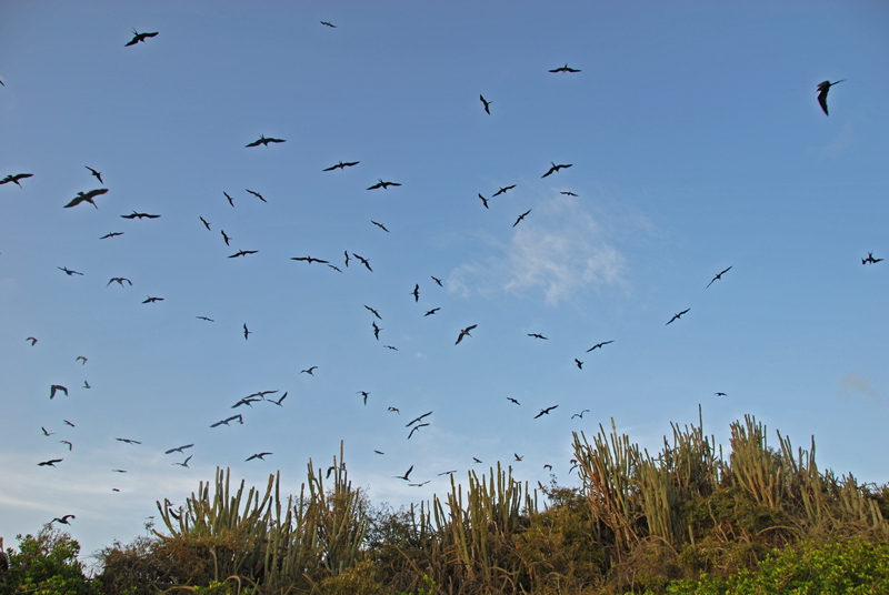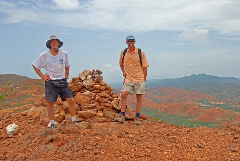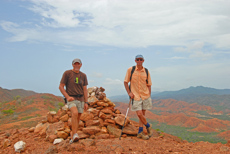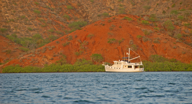 Laguna Grande is an incredible place. Very quiet. Very protected from the elements. Very scenic. On the second day the crew of the three vessels decided to try to hike up to the top of the ridge to the north. The terrain is rocky and rough. Much of it is crumbling shale, which renders the steep slopes a bit slippery. Lots of prickly bushes and cacti. The girls soon decided to return to the dinghy, but the guys pressed on. Two and a half hours later, we had made it to the top. Meanwhile, the gals did some exploring by dinghy, and then retired to the boats. We found a better route to come back down. That, and aided by gravity, got us back down in about an hour.