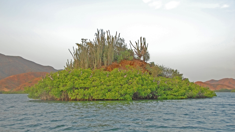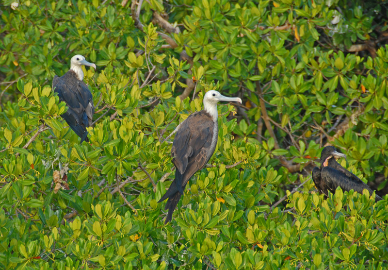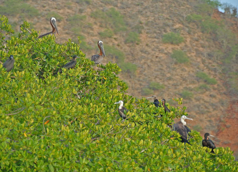 There were a few locals about, doing some fishing. One pirogue with three youths approached us selling clams, mangrove oysters, or fish, and then asked if we had a diving mask. (All in Spanish, of course.) We gave the oldest an old mask of ours -- along with an old snorkel -- and were surprised at the subdued nature of the appreciation shown. The next day he asked our companion vessels for a mask. Selling them, maybe? Or just trying to outfit his siblings?