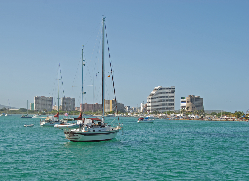 It continues to be fascinating to see the big changes that can occur after moving just a few miles. Margarita is our first contact with Venezuelan culture. The clothes are different, of course. Many men wear tight-fitting western-style shirts -- the kind you see on ranches in Montana or the western Dakotas. Many woman wear tops with plunging necklines. There are few blacks. Most people have Amerindian features, and straight black hair and clear rich brown eyes. The language can be a problem. So far we haven't learned enough Spanish to help much.