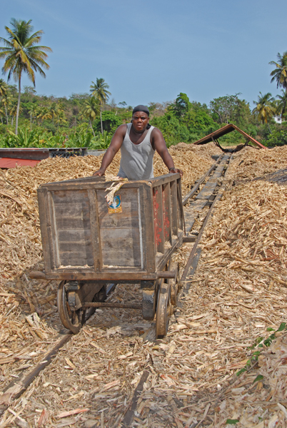 The bagasse (cane stock residue) is just dumped onto this platform...