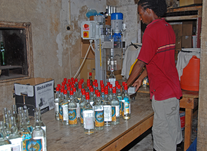 Un-aged rum is stored in an underground vat until Customs are paid. Then transfered to 50 gal barrels, from which the rum is scooped ...