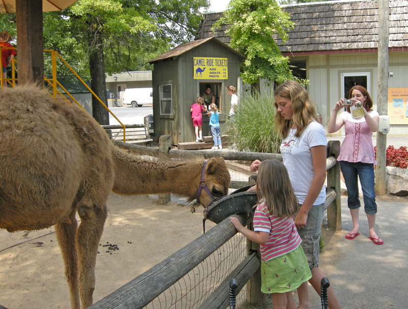 Girls feeding the young camel