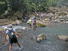 Barb made it and others are fighting the current to get to a little cove at the base of the falls