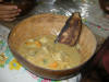 delicious vegetarian soup served in calabash bowls, with "spoons" made of