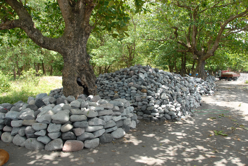 area, and are busy collecting, sorting by size, and piling rocks up away from