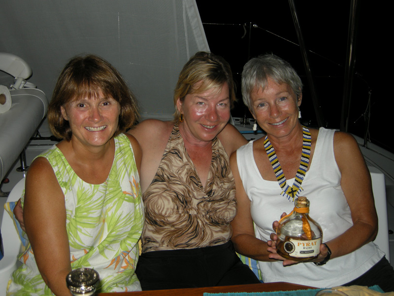 Linda (Seaman's Elixir), Susan (Island Roamer), and Barb have moved on from red wine and are now sampling rums
