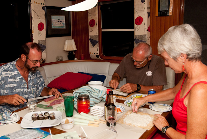 But I digress. Sushi! We each pretty much resumed our roles from the