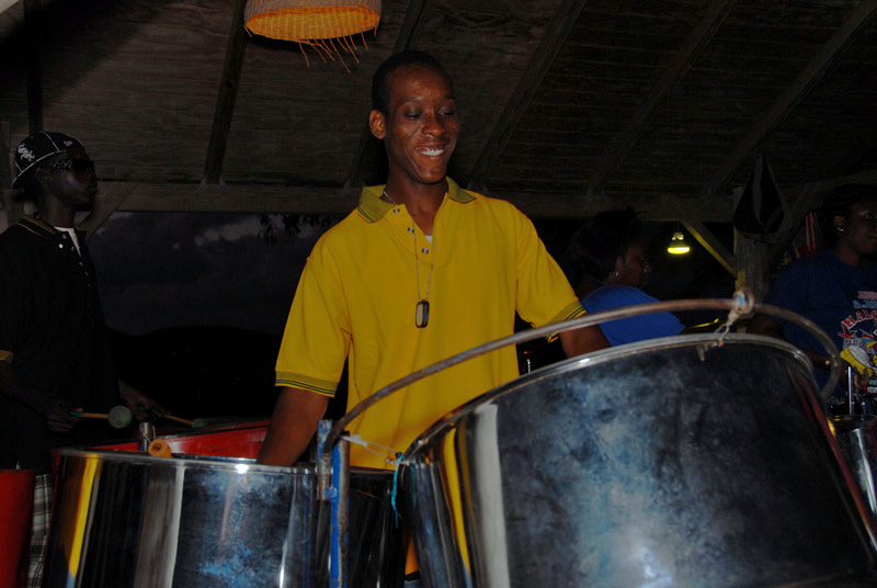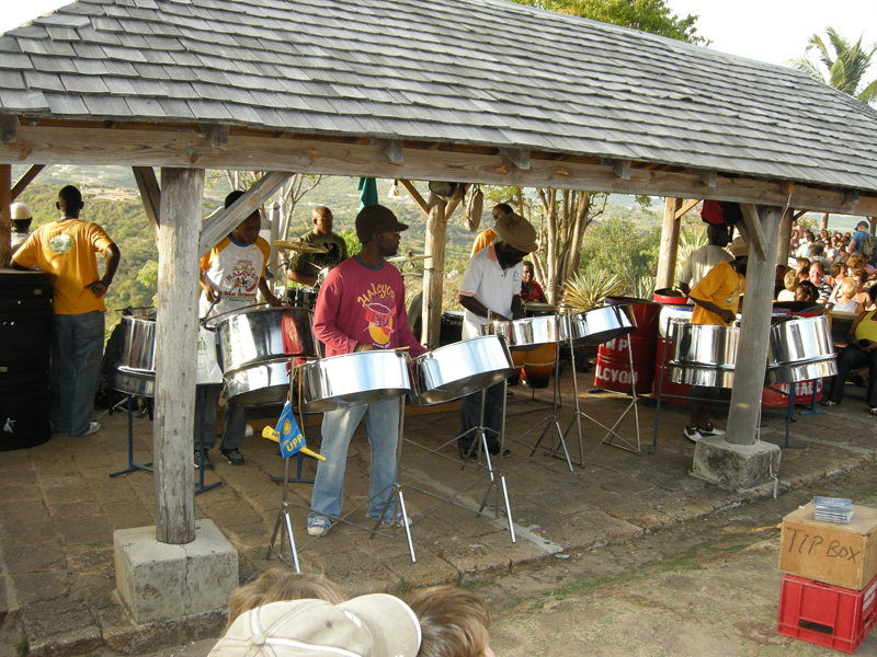 of the steel pan band, not withstanding the sloping stones that pave the entire