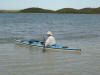Barb launching her kayak for the return trip
