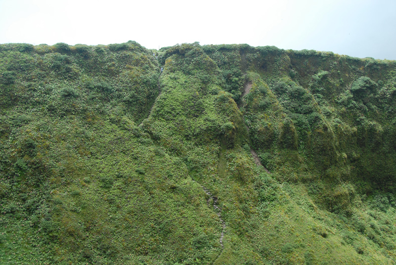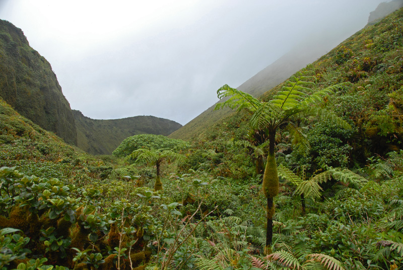 rim down a very steep cliff to a fascinating area with bizarre plants and mossy