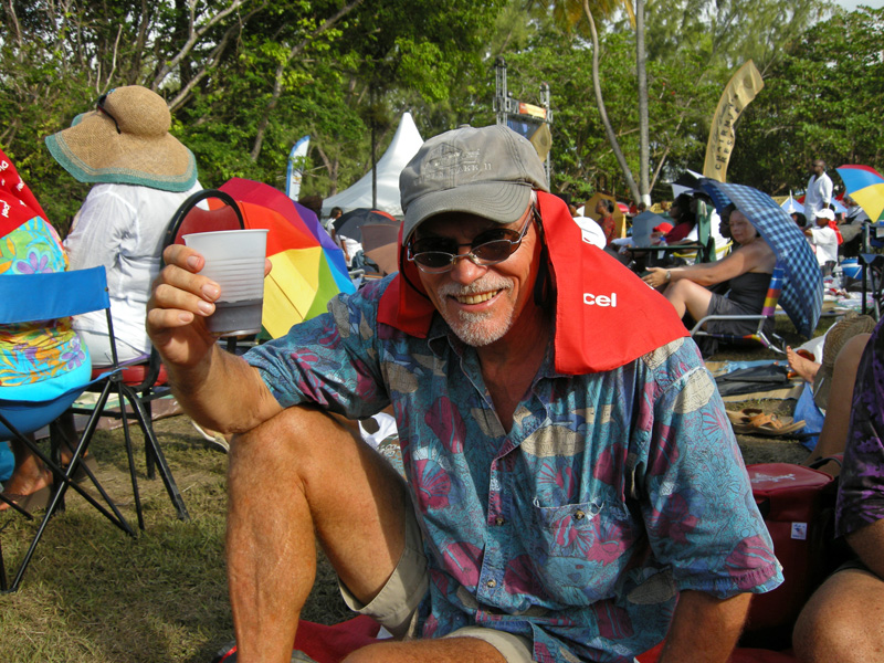 We had rushed down to St. Lucia in order to attend the annual Jazz Festival. There were events all over the island early in the week, but later as the acts became higher-powered the focus was on Pigeon Island right there in Rodney Bay. Thursday evening's performance was rained out. The organizers announced that Thursday tickets would be honored at the Friday performances. Some cruisers had to leave, and so there were Thursday tickets floating around. Chris and Yani (Magus) had purchased Friday tickets and Steve (Receta) had been gifted with two for Thursday. He could use one, but Ann felt she needed to stay back and work on the almost-finished final editing of her second book, so I was offered the other. (Barb was busy with her own projects and was pleased I could go.) I was shocked by the size of the crowd. Arriving well after my friends, I couldn't begin to find them. So I pushed in under a tree off to the side a bit but fairly close to the stage, and watched KC and the Sunshine Band perform versions of their old disco hits that had been, um, jazzed up a bit. Lots of athletic gyrations by young female dancers, sometimes joined -- with considerably truncated movements -- by the pot-bellied and no-longer-young lead singer who I took to be KC himself. Strange performance for a JAZZ festival, I couldn't help but think.
