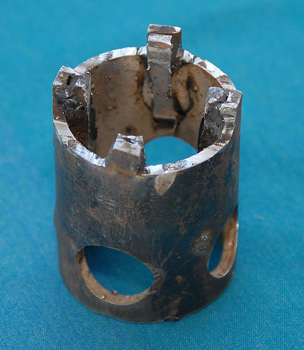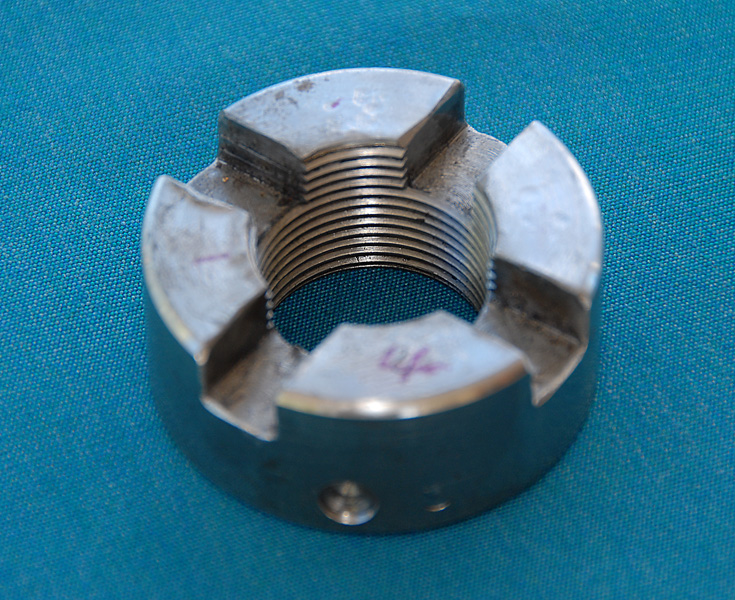 And then, two crucial developments. First, we decided to redouble our efforts to determine which way our threads ran on the end of the shaft. We had had no luck with close-up photos and the use of calipers, but eventually, we hit upon the scheme of pressing picture-mounting clay into each of the indentations of the nut. On the image on the clay, we measured the distance from the end of the shaft to the first ridge of the threads, and realized that on our vessel, the threads are not lefty-loosey. We had occasionally, of course, in desperation, attempted the clockwise direction, but most of our efforts -- and the most vigorous – had been in the conventional counter-clockwise direction. Ouch.