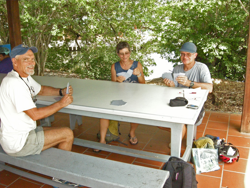 Playing cards with Devi and Hunter at Grace's Roti Shop