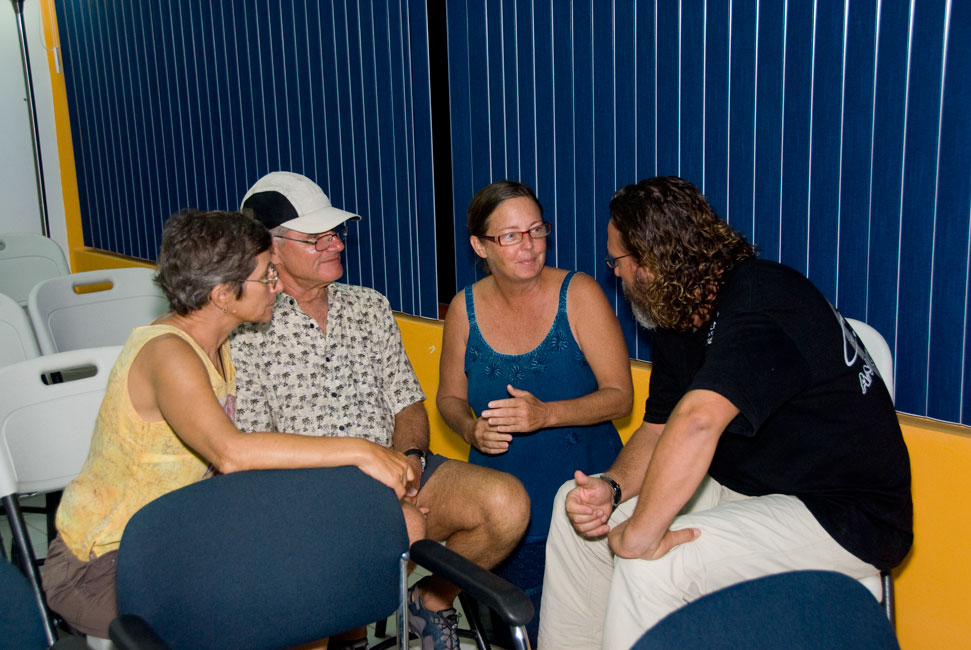 Terns talking with Kim (who certified us to be level-3 fish surveyors for REEF) and the director of the Lionfish removal project