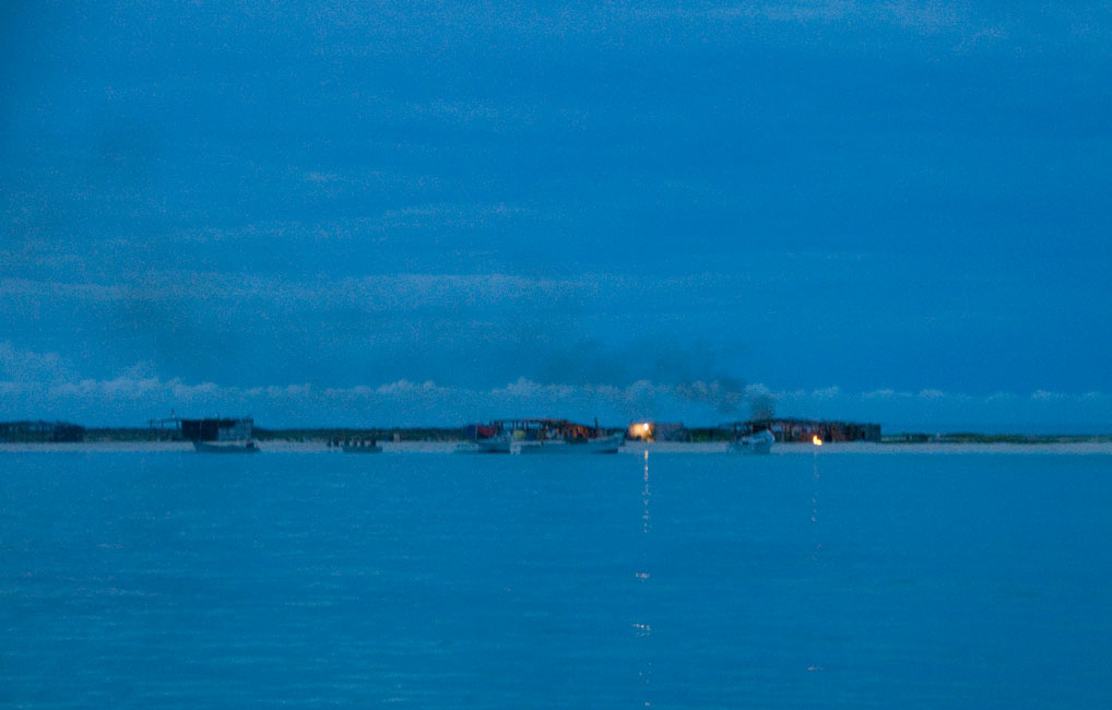 Panorama from the protected bay at Cubagua -- mountains of Margarita in the background