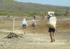 We had been on the hike route before, with Receta, and Arctic Tern had been on a portion of the hike before w/ Asseance. It is the best hike that we have found in the area. The part going down the west coast from Ste. Anne is through woods and mangroves. The bottom is through a thriving beach area with lots of local and tourist beachifiers and lots of stands set up providing meals and snacks. The east coast is much wilder, with thundering waves hitting rocky cliffs, and a "petrified savannah" (from which one guide book said all of the petrified objects had been carried off) that is beautiful in its starkness. We stuck with the trail up the east side until we were approximately even with Ste. Anne, and then took a rocky road westward back in her direction, passing farm fields and pastures hosting cattle that were much fatter and healthier than most we have seen in the Caribbean. Many of the fields were filled with melons. One in particular had obviously been harvested, but there were a few melons still on the ground, and they were in good shape. The walk along the road was out in the sun, and we were hot, thirsty, and hungry. You cannot imagine how good those melons tasted!