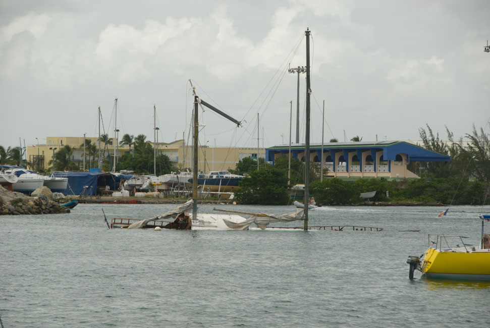 Just inside the Lagoon at the end of the channel from the French bridge, this vessel sank while we where in St. Martin
