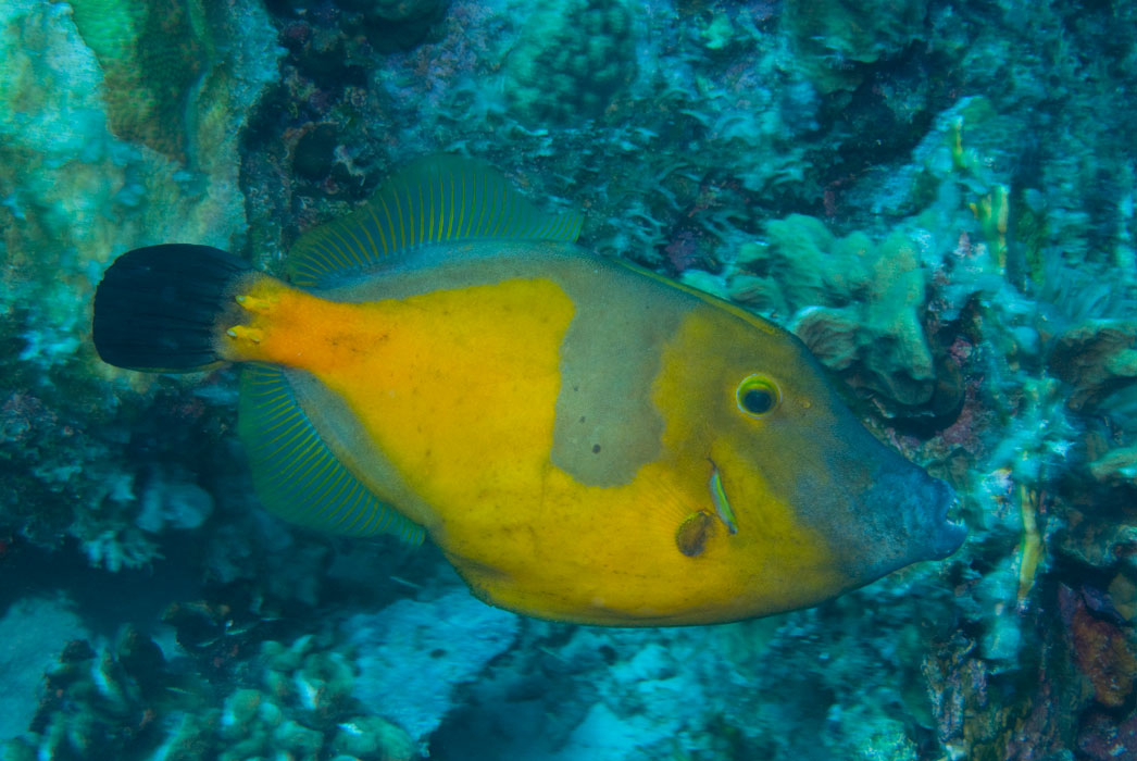 When we were here last summer, the anti-Lionfish campaign consisted of encouraging all divers to obtain a supply of the widely-available strips of yellow ribbon in order to mark the location of any sighted lionfish. Each yard-long length of ribbon had a cork attached so that the ribbon would stand vertically in the water. Then, on returning to shore, the diver could either report the location via phone or a special for-the-purpose web site. Later, "official" hunters would seek out the ribbon and herd the fish into a net using a fly swatter. (Really.) The fish would then either be dispatched or turned in to the research center for analysis of its stomach contents.