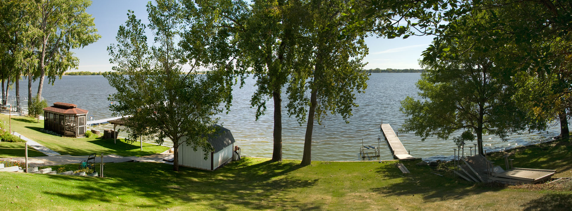 Panorama of the lake front behind Robb's cabin
