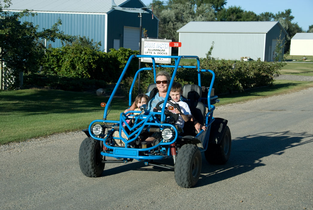 took grandkids Cole and Katy for a ride on the four-wheeler, with Cole doing