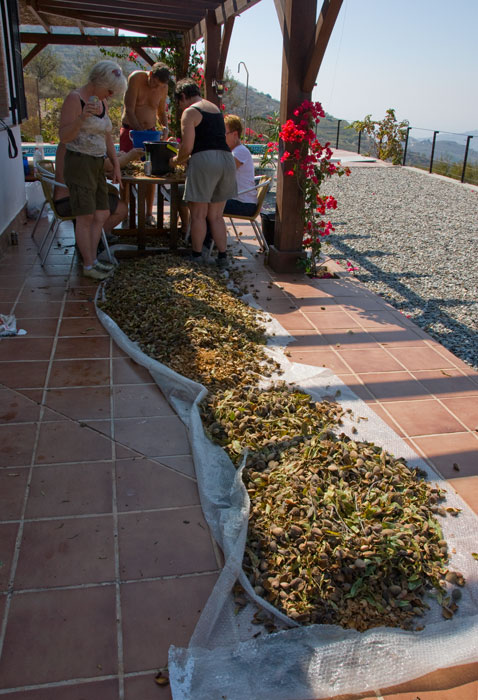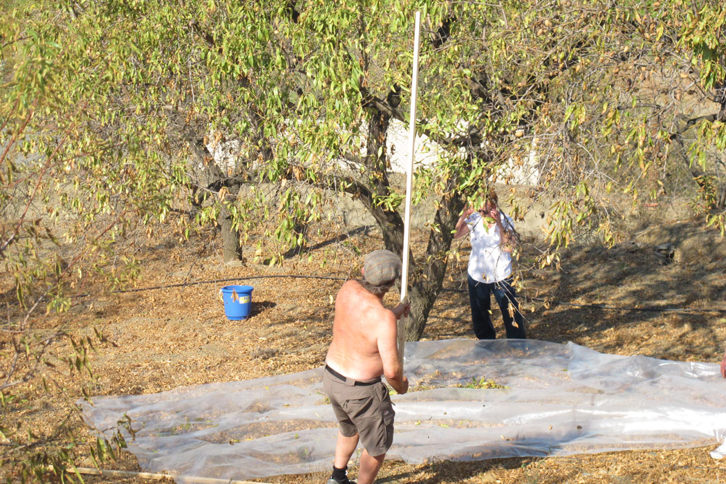 leaves and branches that also fell onto tarps, and from removing the pods from those almonds