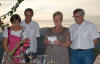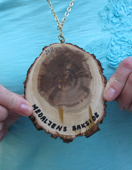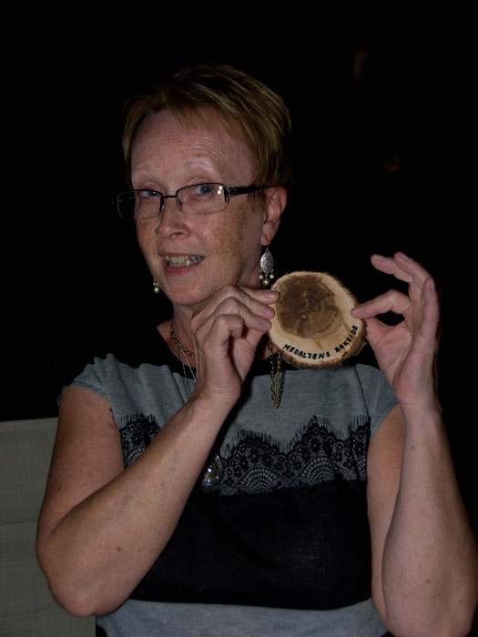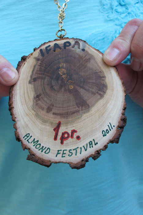 ... but then present a plaque made from the trunk of an almond tree previously removed from the orchard