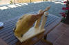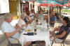 Many of the guests arrived earlier than the official start of the party. Those present drove down to Salobrena one day, where we briefly beachified and had lunch at a Chinese restaurant. Most ordered beer, and the unfortunate waitress arrived with a large platter carrying the drinks. She stumbled against something and the platter tipped, spilling the beer onto the table and also onto the even-more-unfortunate Kari. (See photo below.)
