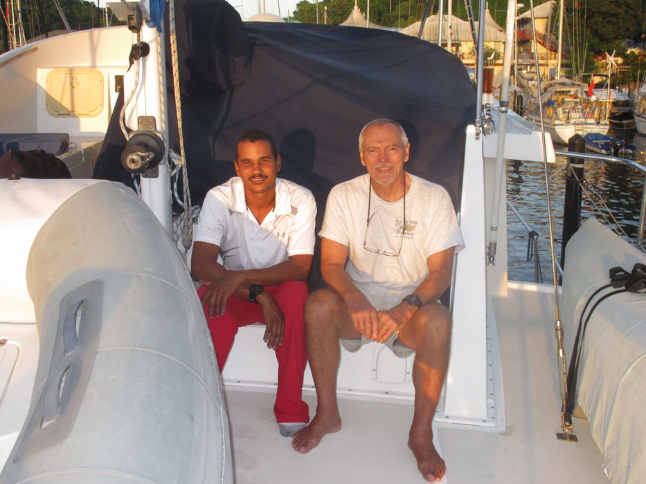 Posing w/ Carlos after he installed the refurbished dinghy skirt.