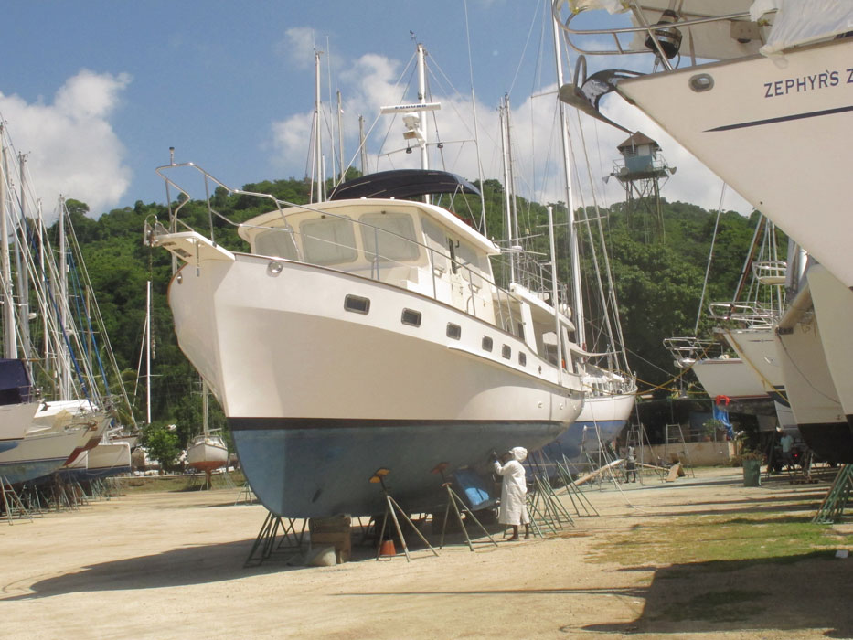 ... and a few days later the bottom was sanded in preparation for the application of anti-fouling paint when we return
